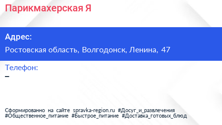 Парикмахерская.Я по адресу Ростовская область, Волгодонск, Ленина, 47 в дальнейшем Организация, размещена в следующих категориях: