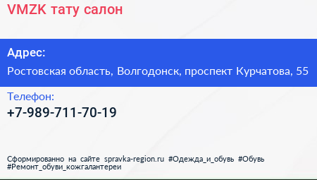 VMZK, тату-салон по адресу Ростовская область, Волгодонск, проспект Курчатова, 55 в дальнейшем Организация, размещена в следующих категориях: