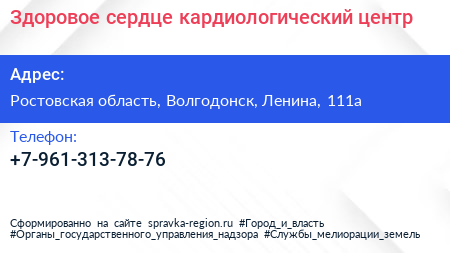 Здоровое сердце, кардиологический центр по адресу Ростовская область, Волгодонск, Ленина, 111а в дальнейшем Организация, размещена в следующих категориях: