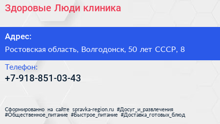 Здоровые Люди, клиника по адресу Ростовская область, Волгодонск, 50 лет СССР, 8 в дальнейшем Организация, размещена в следующих категориях: