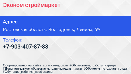 Эконом, строймаркет по адресу Ростовская область, Волгодонск, Ленина, 99 в дальнейшем Организация, размещена в следующих категориях: