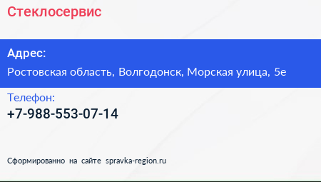 Стеклосервис по адресу Ростовская область, Волгодонск, Морская улица, 5е в дальнейшем Организация, размещена в следующих категориях: