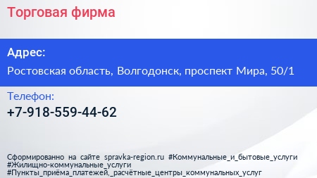 Торговая фирма по адресу Ростовская область, Волгодонск, проспект Мира, 50/1 в дальнейшем Организация, размещена в следующих категориях: