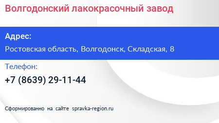 Волгодонский лакокрасочный завод по адресу Ростовская область, Волгодонск, Складская, 8 в дальнейшем Организация, размещена в следующих категориях: