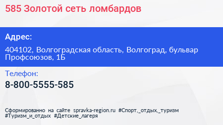 585 Золотой, сеть ломбардов по адресу 404102, Волгоградская область, Волгоград, бульвар Профсоюзов, 1Б в дальнейшем Организация, размещена в следующих категориях: