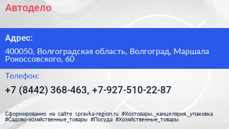 Автодело по адресу 400050, Волгоградская область, Волгоград, Маршала Рокоссовского, 60 в дальнейшем Организация, размещена в следующих категориях: