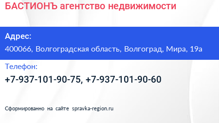 БАСТИОНЪ, агентство недвижимости по адресу 400066, Волгоградская область, Волгоград, Мира, 19а в дальнейшем Организация, размещена в следующих категориях: