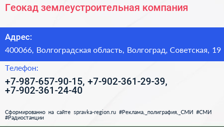 Геокад, землеустроительная компания по адресу 400066, Волгоградская область, Волгоград, Советская, 19 в дальнейшем Организация, размещена в следующих категориях: