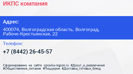ИКПС, компания по адресу 400074, Волгоградская область, Волгоград, Рабоче-Крестьянская, 22 в дальнейшем Организация, размещена в следующих категориях: