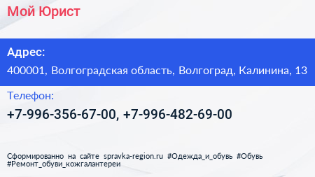 Мой Юрист по адресу 400001, Волгоградская область, Волгоград, Калинина, 13 в дальнейшем Организация, размещена в следующих категориях: