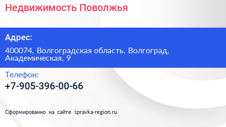 Недвижимость Поволжья по адресу 400074, Волгоградская область, Волгоград, Академическая, 9 в дальнейшем Организация, размещена в следующих категориях: