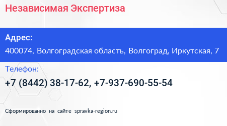 Независимая Экспертиза по адресу 400074, Волгоградская область, Волгоград, Иркутская, 7 в дальнейшем Организация, размещена в следующих категориях:
