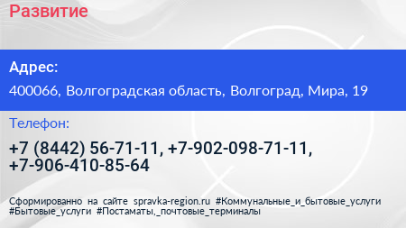 Развитие по адресу 400066, Волгоградская область, Волгоград, Мира, 19 в дальнейшем Организация, размещена в следующих категориях:
