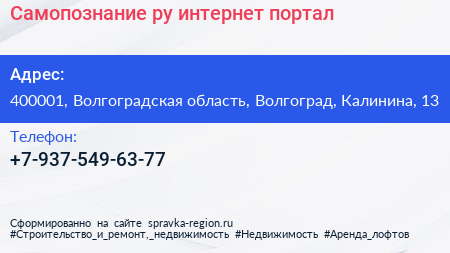 Самопознание.ру, интернет-портал по адресу 400001, Волгоградская область, Волгоград, Калинина, 13 в дальнейшем Организация, размещена в следующих категориях: