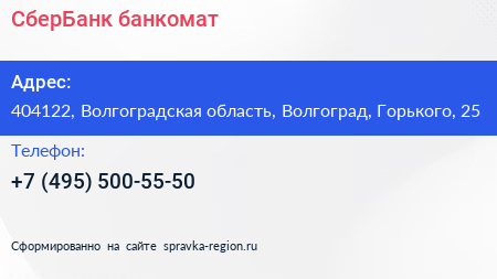 СберБанк, банкомат по адресу 404122, Волгоградская область, Волгоград, Горького, 25 в дальнейшем Организация, размещена в следующих категориях: