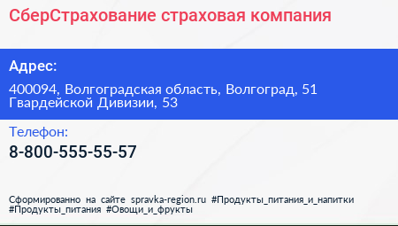 СберСтрахование, страховая компания по адресу 400094, Волгоградская область, Волгоград, 51 Гвардейской Дивизии, 53 в дальнейшем Организация, размещена в следующих категориях: