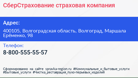 СберСтрахование, страховая компания по адресу 400105, Волгоградская область, Волгоград, Маршала Ерёменко, 98 в дальнейшем Организация, размещена в следующих категориях:
