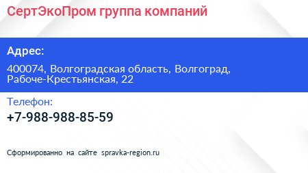 СертЭкоПром, группа компаний по адресу 400074, Волгоградская область, Волгоград, Рабоче-Крестьянская, 22 в дальнейшем Организация, размещена в следующих категориях: