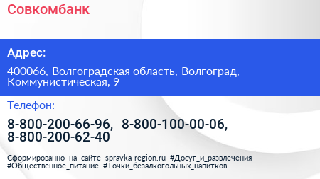 Совкомбанк по адресу 400066, Волгоградская область, Волгоград, Коммунистическая, 9 в дальнейшем Организация, размещена в следующих категориях: