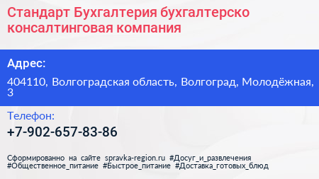 Стандарт Бухгалтерия, бухгалтерско-консалтинговая компания по адресу 404110, Волгоградская область, Волгоград, Молодёжная, 3 в дальнейшем Организация, размещена в следующих категориях: