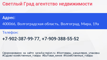 Светлый Град, агентство недвижимости по адресу 400066, Волгоградская область, Волгоград, Мира, 19а в дальнейшем Организация, размещена в следующих категориях: