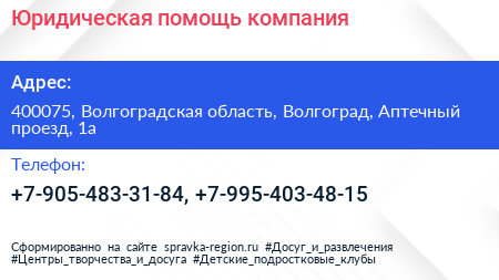 Юридическая помощь, компания по адресу 400075, Волгоградская область, Волгоград, Аптечный проезд, 1а в дальнейшем Организация, размещена в следующих категориях: