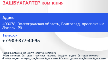 ВАШБУХГАЛТЕР, компания по адресу 400078, Волгоградская область, Волгоград, проспект им. Ленина, 98 в дальнейшем Организация, размещена в следующих категориях: