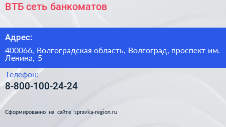 ВТБ, сеть банкоматов по адресу 400066, Волгоградская область, Волгоград, проспект им. Ленина, 5 в дальнейшем Организация, размещена в следующих категориях: