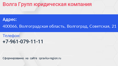 Волга-Групп, юридическая компания по адресу 400066, Волгоградская область, Волгоград, Советская, 21 в дальнейшем Организация, размещена в следующих категориях: