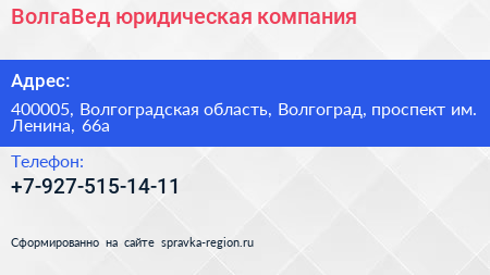 ВолгаВед, юридическая компания по адресу 400005, Волгоградская область, Волгоград, проспект им. Ленина, 66а в дальнейшем Организация, размещена в следующих категориях: