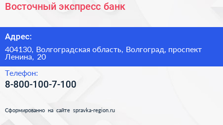 Восточный экспресс банк по адресу 404130, Волгоградская область, Волгоград, проспект Ленина, 20 в дальнейшем Организация, размещена в следующих категориях: