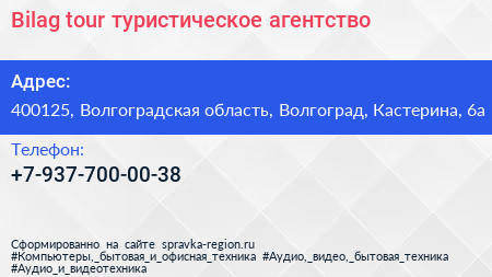 Bilag tour, туристическое агентство по адресу 400125, Волгоградская область, Волгоград, Кастерина, 6а в дальнейшем Организация, размещена в следующих категориях: