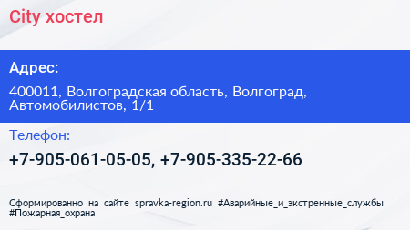 City, хостел по адресу 400011, Волгоградская область, Волгоград, Автомобилистов, 1/1 в дальнейшем Организация, размещена в следующих категориях: