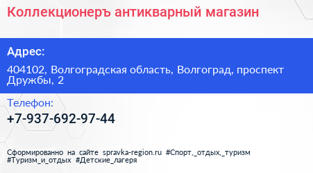 Коллекционеръ, антикварный магазин по адресу 404102, Волгоградская область, Волгоград, проспект Дружбы, 2 в дальнейшем Организация, размещена в следующих категориях:
