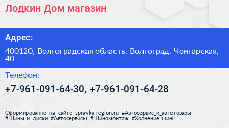 Лодкин Дом, магазин по адресу 400120, Волгоградская область, Волгоград, Чонгарская, 40 в дальнейшем Организация, размещена в следующих категориях: