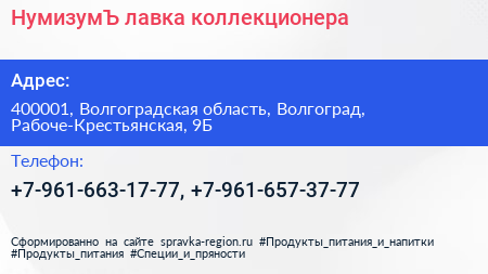 НумизумЪ, лавка коллекционера по адресу 400001, Волгоградская область, Волгоград, Рабоче-Крестьянская, 9Б в дальнейшем Организация, размещена в следующих категориях: