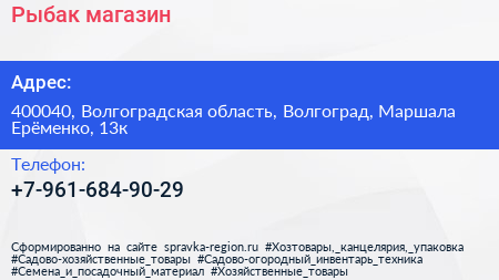Рыбак, магазин по адресу 400040, Волгоградская область, Волгоград, Маршала Ерёменко, 13к в дальнейшем Организация, размещена в следующих категориях: