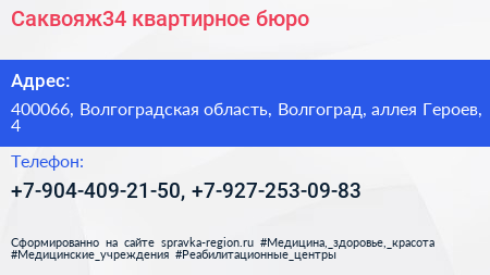 Саквояж34, квартирное бюро по адресу 400066, Волгоградская область, Волгоград, аллея Героев, 4 в дальнейшем Организация, размещена в следующих категориях: