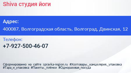 Shiva, студия йоги по адресу 400087, Волгоградская область, Волгоград, Двинская, 12 в дальнейшем Организация, размещена в следующих категориях: