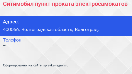 Ситимобил, пункт проката электросамокатов по адресу 400066, Волгоградская область, Волгоград, в дальнейшем Организация, размещена в следующих категориях: