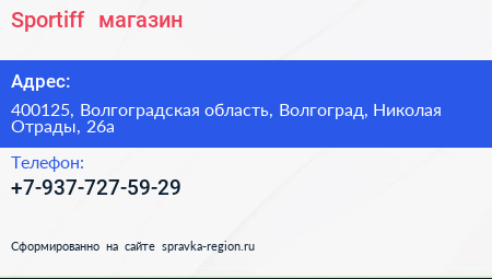 Sportiff+, магазин по адресу 400125, Волгоградская область, Волгоград, Николая Отрады, 26а в дальнейшем Организация, размещена в следующих категориях: