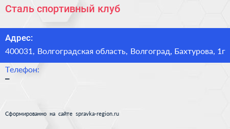 Сталь, спортивный клуб по адресу 400031, Волгоградская область, Волгоград, Бахтурова, 1г в дальнейшем Организация, размещена в следующих категориях: