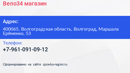 Вело34, магазин по адресу 400065, Волгоградская область, Волгоград, Маршала Ерёменко, 53 в дальнейшем Организация, размещена в следующих категориях: