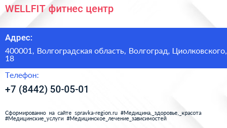 WELLFIT, фитнес-центр по адресу 400001, Волгоградская область, Волгоград, Циолковского, 18 в дальнейшем Организация, размещена в следующих категориях: