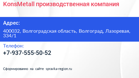 KonsMetall, производственная компания по адресу 400032, Волгоградская область, Волгоград, Лазоревая, 334/1 в дальнейшем Организация, размещена в следующих категориях: