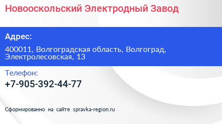 Новооскольский Электродный Завод по адресу 400011, Волгоградская область, Волгоград, Электролесовская, 13 в дальнейшем Организация, размещена в следующих категориях: