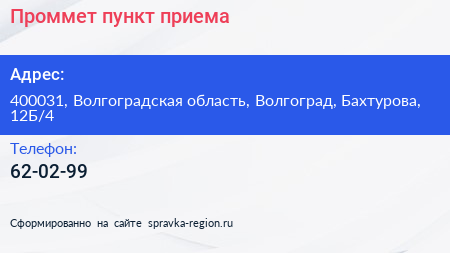 Проммет, пункт приема по адресу 400031, Волгоградская область, Волгоград, Бахтурова, 12Б/4 в дальнейшем Организация, размещена в следующих категориях: