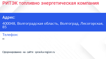 РИТЭК, топливно-энергетическая компания по адресу 400048, Волгоградская область, Волгоград, Лесогорская, 85 в дальнейшем Организация, размещена в следующих категориях: