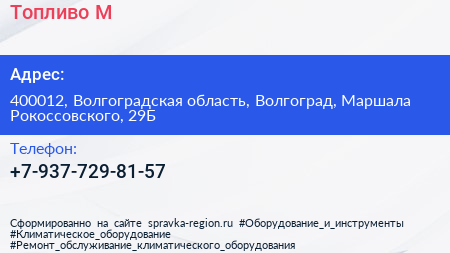 Топливо-М по адресу 400012, Волгоградская область, Волгоград, Маршала Рокоссовского, 29Б в дальнейшем Организация, размещена в следующих категориях: