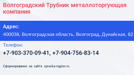 Волгоградский Трубник, металлоторгующая компания по адресу 400038, Волгоградская область, Волгоград, Дунайская, 82 в дальнейшем Организация, размещена в следующих категориях: